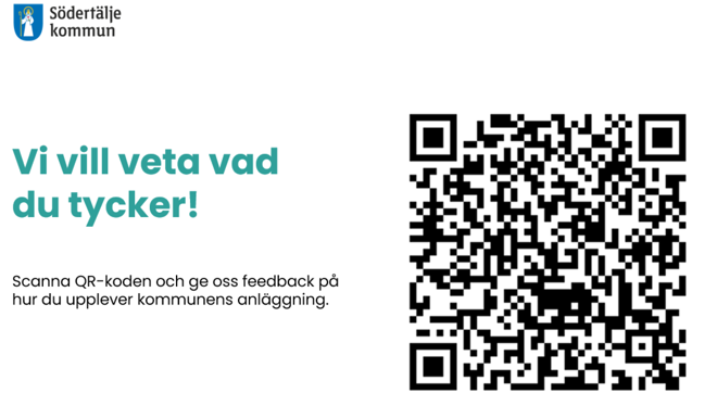 Du kan också scanna QR-koden nedan för att tycka till om de anläggningar som finns runt om i Södertälje: